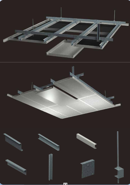 The hook-on system is specially designed for where regular access is important for maintenance. These systems are mostly used where the ceiling layout is special and important, and you can choose any module, like rectangular-shaped panels, square panels without size limitation, trapezoidal designs, triangular-shaped panels, etc.